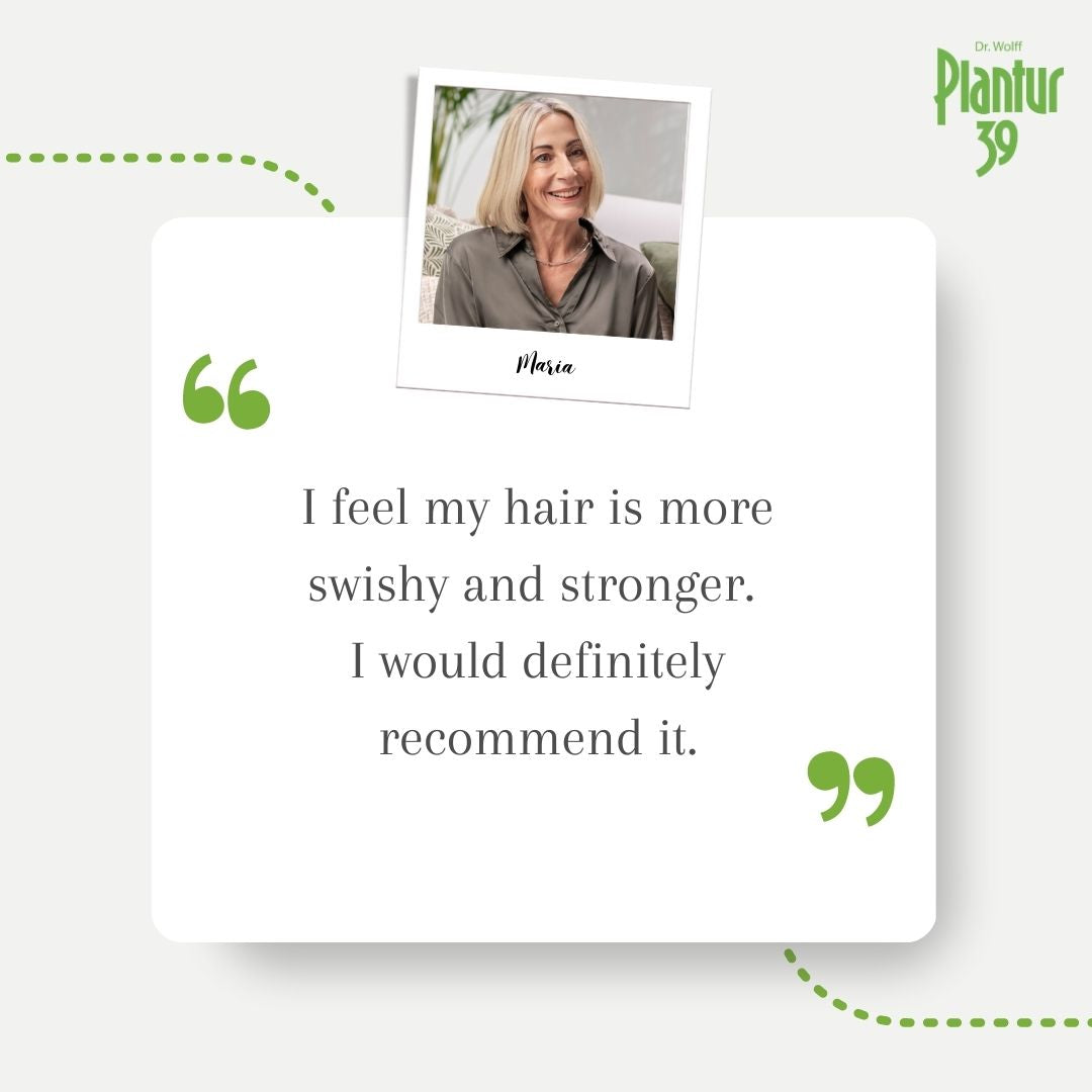 Thinking about trying Plantur 39 but still not sure? Read or watch some of real user testimonials. Find out why they love and recommend our products.