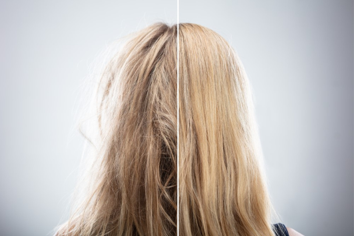 Nearly every woman will experience fragile hair, split ends or dry hair caused by hair damage. When your hair is damaged it may break or fall out more often leading to hair thinning. When our hair is healthy, it feels smooth and silky. If the hair has been placed under a great deal of stress, it is rougher, duller and more matte. You can recognise damaged hair from the following symptoms: