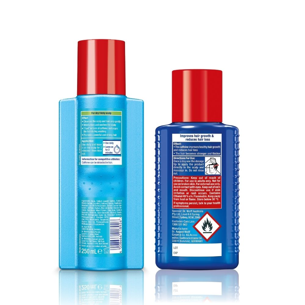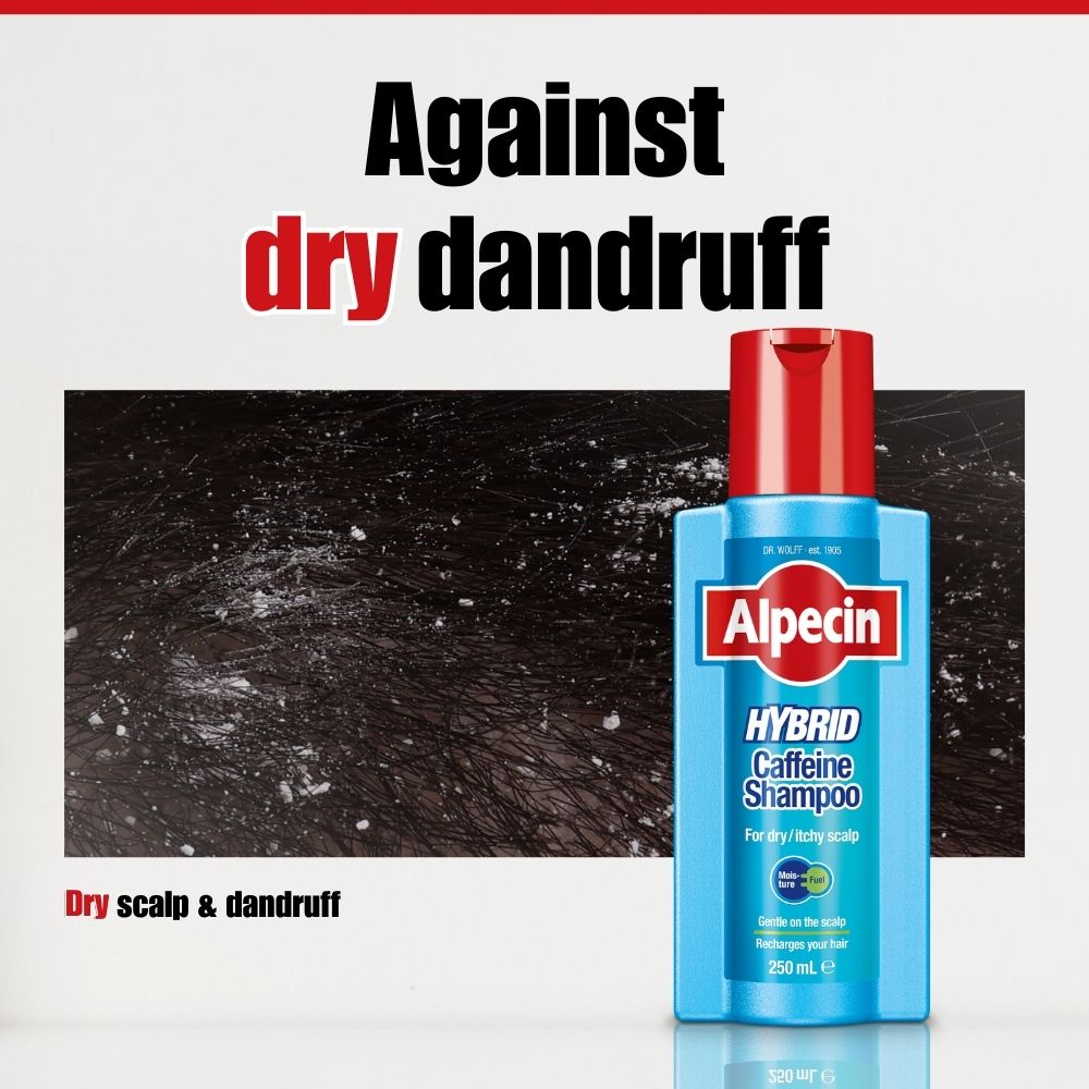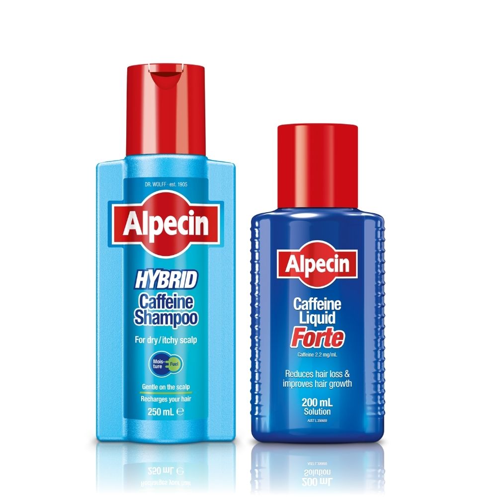 A Strong Duo to help fight against dry dandruff and hair loss. Alpecin Hybrid Caffeine Shampoo will will moisturise and soothe the scalp to remove dandruff while the Caffeine Liquid Forte Fights for your hair to reduce hair loss.