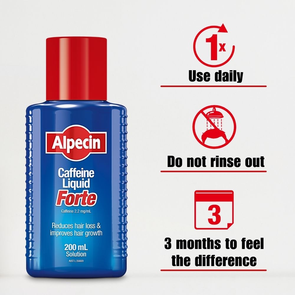 Alpecin Caffeine Liquid Forte contributes to extending the growth phases and reduces hair loss through a daily targeted dose of caffeine to your scalp. With daily application there is noticeably less hair in drain and on the pillow within 3 Months. Help prevent premature hair loss at the source with Alpecin Caffeine Liquid Forte.